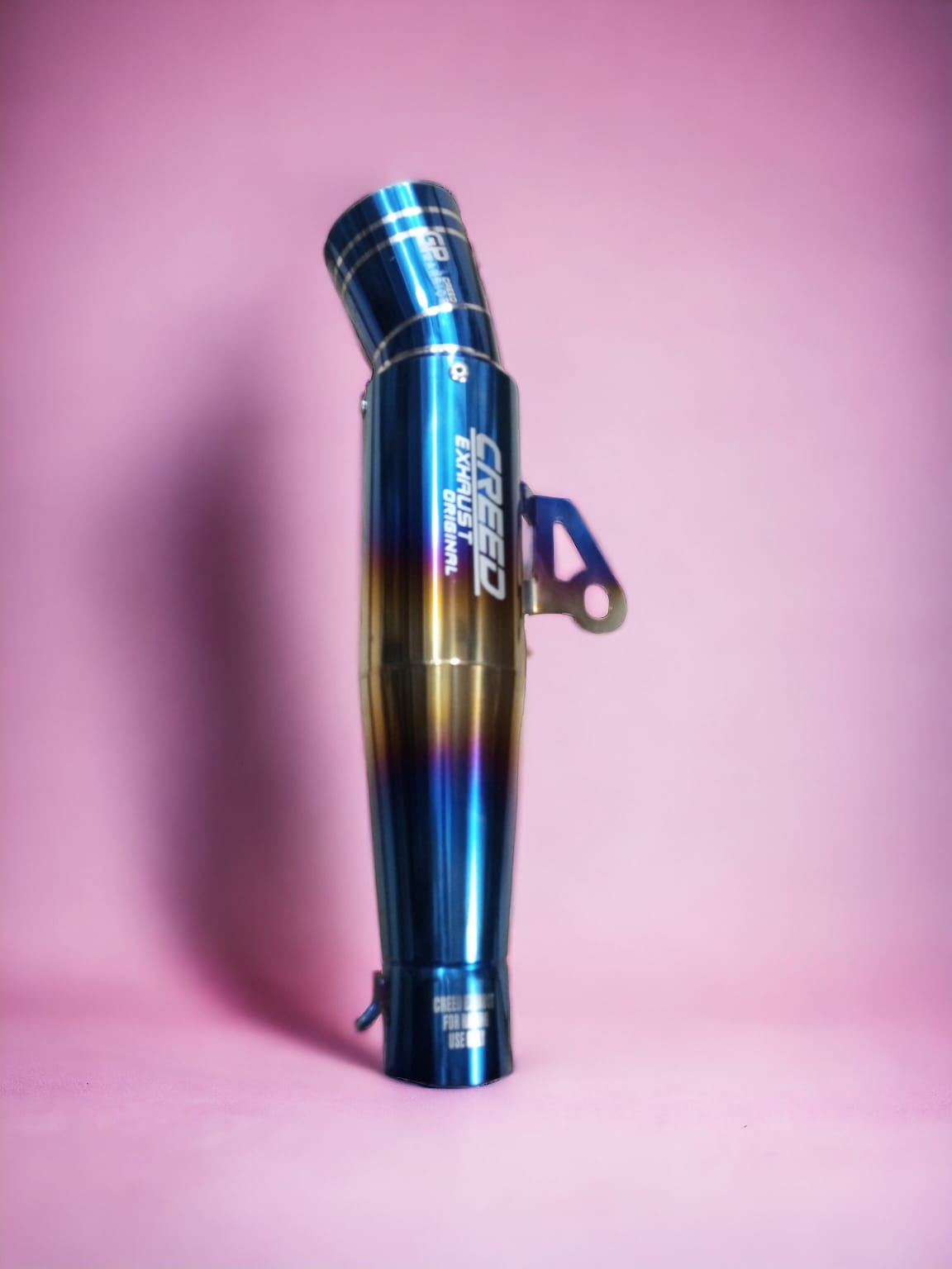 The HP Creed Burntip exhaust features a darkened or blackened finish at the end of the exhaust pipe, conveying a sporty and aggressive appearance. In contrast, the Rainbow option offers a colorful, iridescent effect, adding a unique and attention-grabbing touch to your vehicle’s exhaust system. Choose between the two based on your personal style preferences and desired aesthetic for your vehicle.